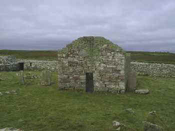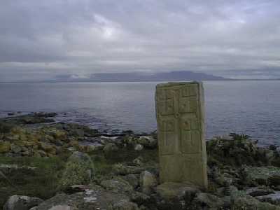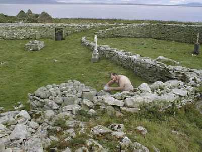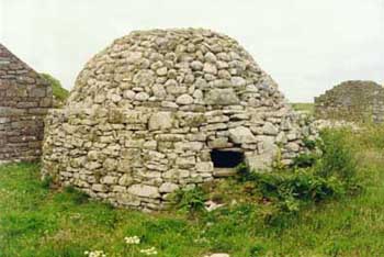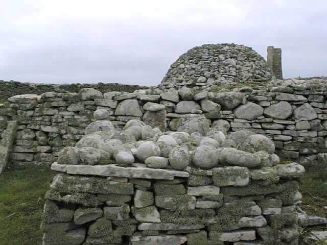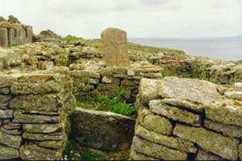 Cursing Stones with Beehive hut in the background, and (right) detail of the Stones