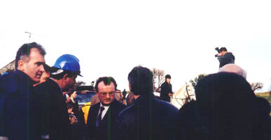 people, many with family connections to Coney, crowded around the island's tiny public