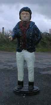 Andy wrote: Tramore's most famous personality has been standing on top of his 61-foot pillar since 1824, warning mariners of the dangerous Tramore Bay. The origin of this impressive figure dates from the early years of the 19th century when a sailing vessel passed on the wrong side of a reef of rocks off Rosses Point and foundered with the loss of all hands. The wife of the Captain of the ill-fated vessel was so appalled by the tragedy that she petitioned the Authorities to place some sort of warning signal on the dangerous rocks, and as the authorities seemed to address the matter with a lot more wages than actions, the good lady decided to do something about it herself. Being a woman of some means she commissioned the sculptor, Thomas Kirk, to design some form of warning signal, and so was created the small model of a Metal Man which Kirk exhibited at an exhibition in London in 1817. That catalogue described it as the figure of a British Tar, a sketch designed for a colossal statue to stand on a dangerous rock in the sea near the harbour of Sligo as a beacon. Two years later the Ballast Board commissioned John Clarke to cast a metal figure from Kirk's model at a cost of 80 pounds. It was one of four gigantic figures cast at that time, our man being one of them. The whereabouts of the other two remain a mystery. Many suggestions have been bandied around - Sydney Harbour, Montevideo, Norway and even Boston in the USA. However, Tony Caulfield, an avid Marine enthusiast, wrote to the Library in Sydney, Australia, and they assured him that there was never any such statue in Sydney. Personally, I would image that they were probably lost in transit to some foreign destinations and are now lying at the bottom of Davy Jones' Locker. Thankfully Tramore and Sligo have that old man of the sea still in their midst.